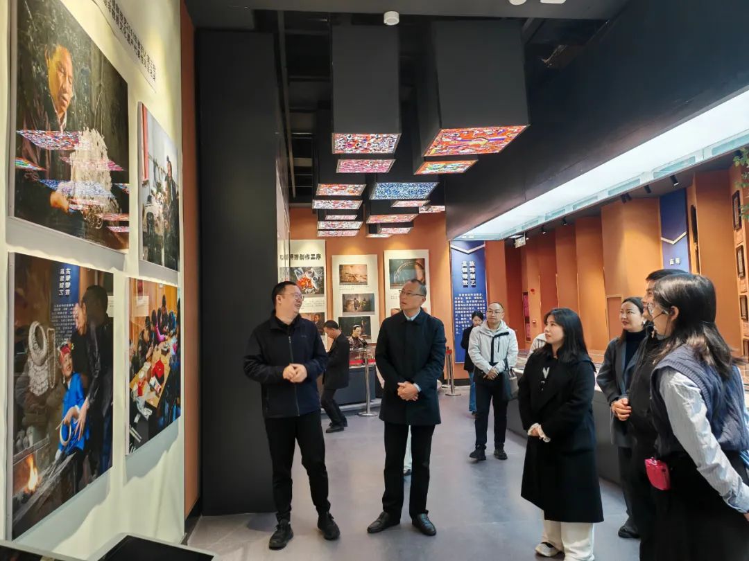 李兴旺一行首先参观台江县非遗展览馆,随后前往展演活动现场观看共青团员、少先队员亲制的非遗展品。