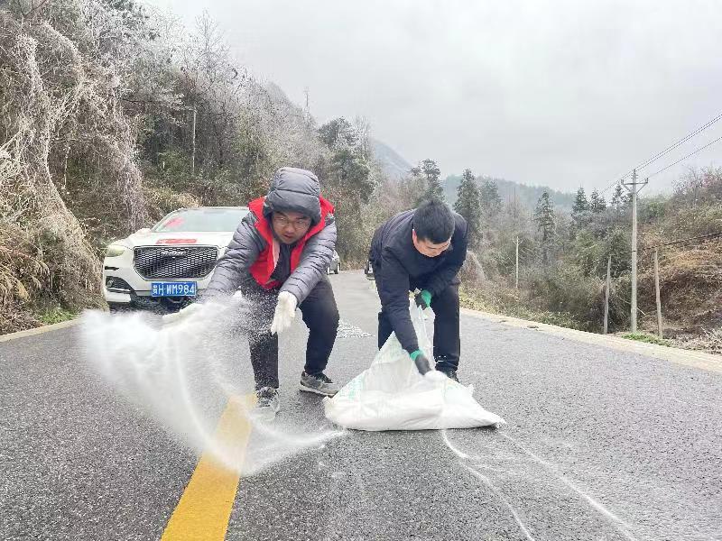 撒盐除冰保畅,岑巩青年突击队在行动
