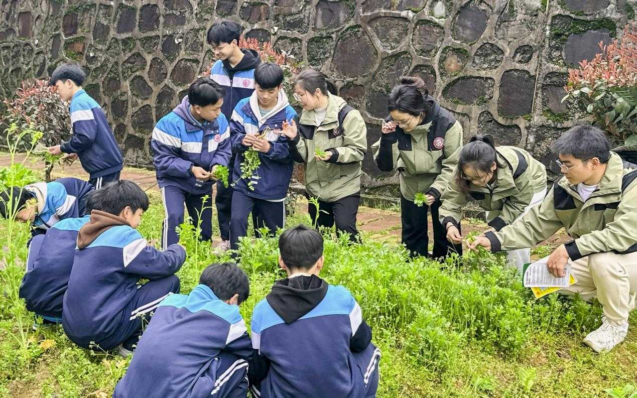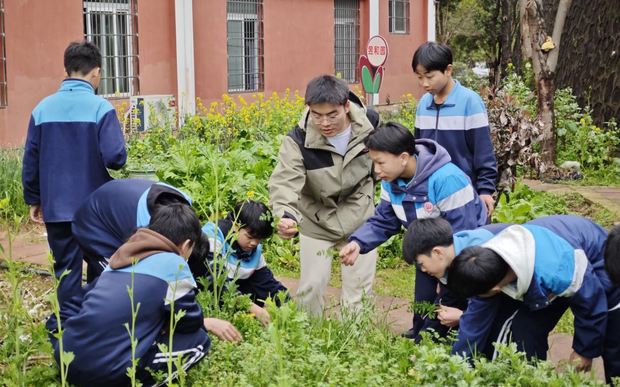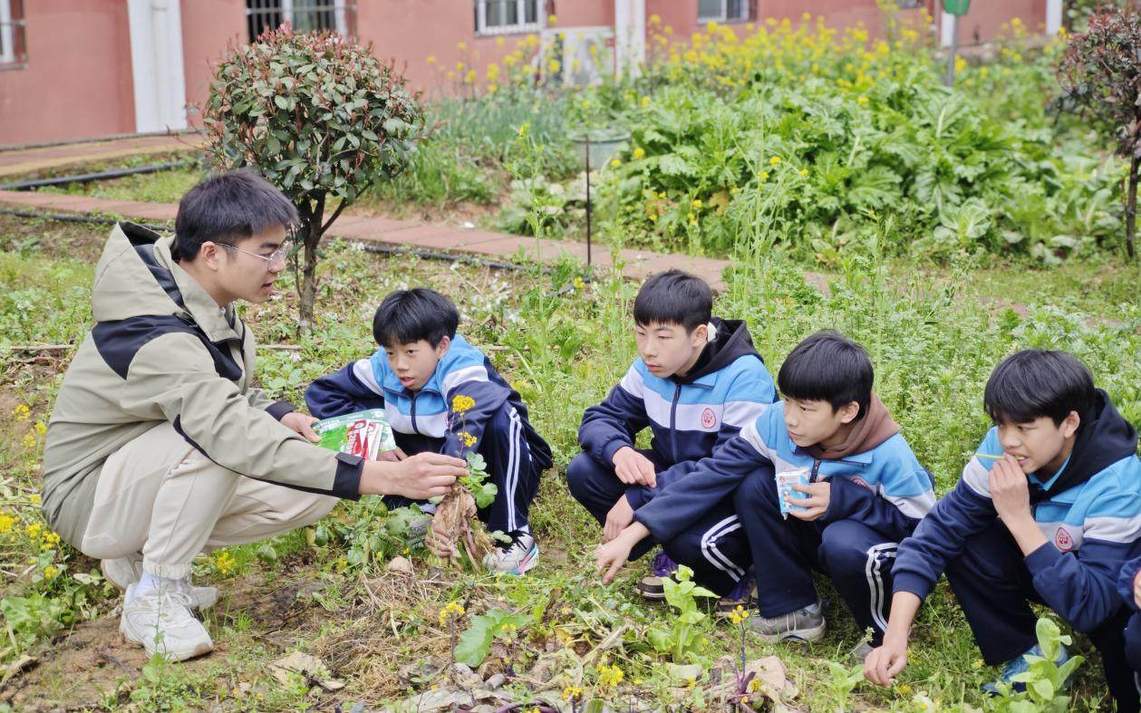 理论学习后,研支团的老师带领学生前往学校劳动教育基地开展植树活动。研支团成员现场示范种植技巧,并融入“土壤保护”“树木养护”等科普知识,将劳动技能与生态知识有机结合。活动共种植各类蔬菜种子200余株,每块劳动基地上均挂上“责任牌”,由班级认养并负责后期维护,确保劳动教育长效化。